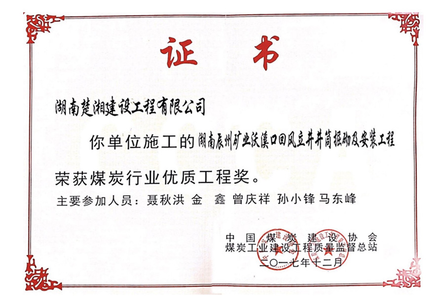 煤炭行業“優質工程獎”
