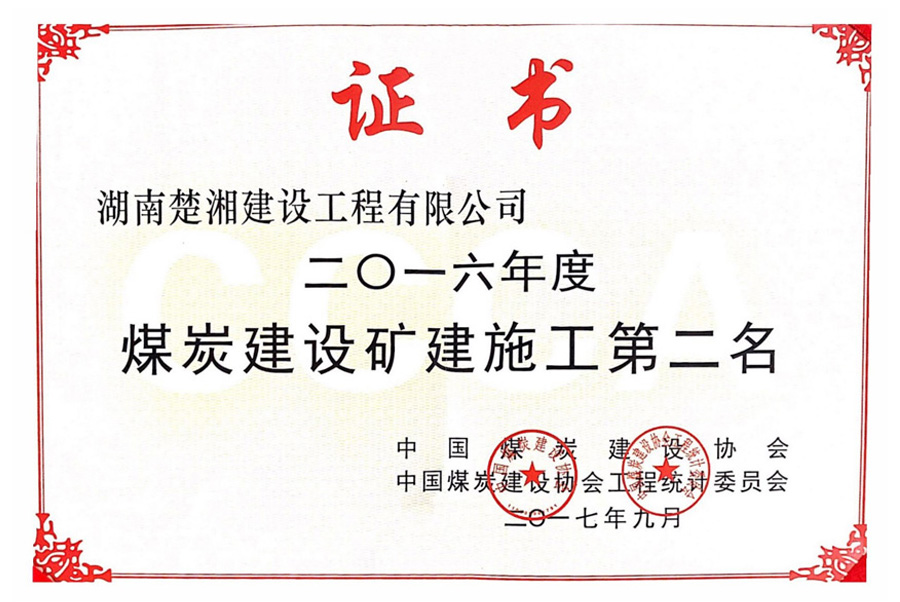 2016年度煤炭建設礦建施工第二名