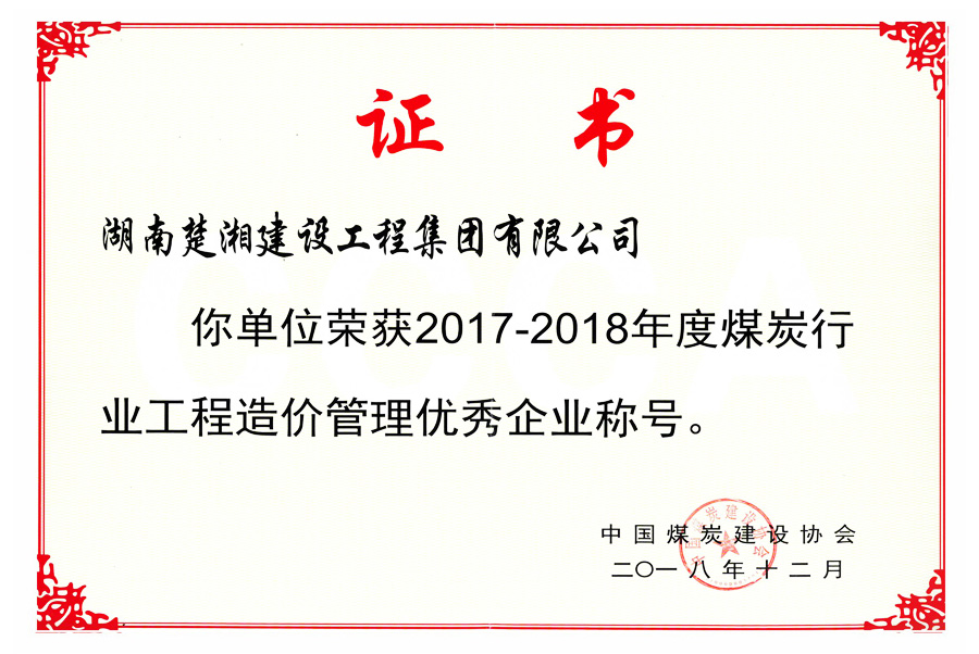 2017-2018年度煤炭行業工程造價管理優秀企業